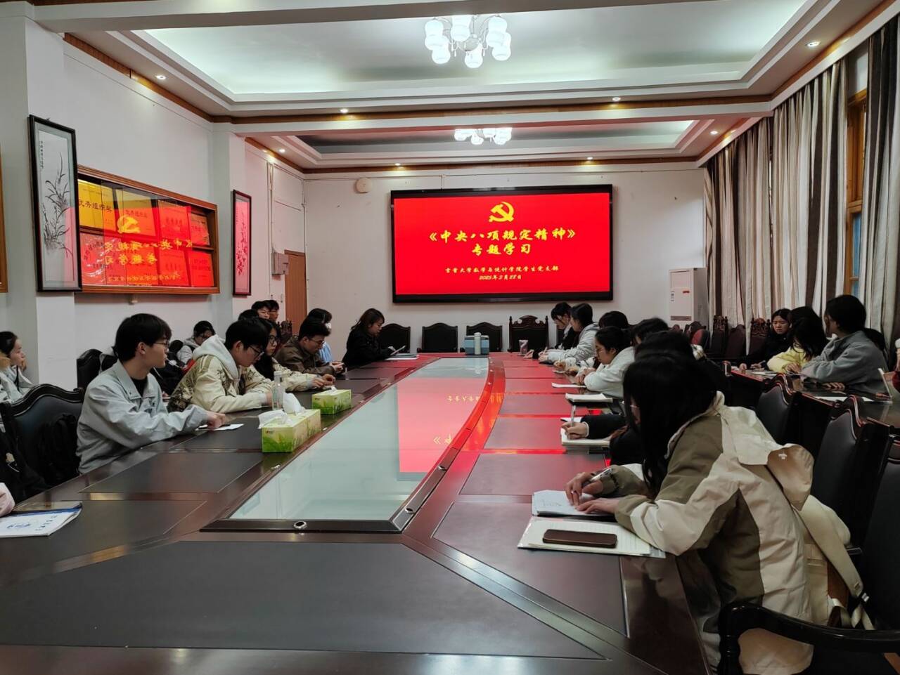 (通讯员 孟阳)为持续深化全面从严治党,推动中央八项规定精神入脑入心、化风成俗,2025年3月28日,William威廉英国本科生党支部组织全体党员在1209开展以“深入学习领会中央八项规定精神”为主题的党日活动。活动通过集中学习、心得交流与总结提升三个环节,引导全体党员深刻认识作风建设的重要性与长期性。