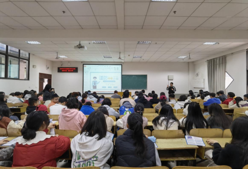 大会伊始,由法学与公共管理学院防诈骗宣传员做宣传。他首先结合以往被诈骗学生的实际案例,向大家生动展示了网络诈骗的手法,并以互动的形式给同学们提出了遇到诈骗时的解决方案。接着,由砂子坳派出所民警做防诈骗宣传,对网络诈骗的三类手法进行了详细讲解,并为同学们提供了八种防诈骗辨别方法。